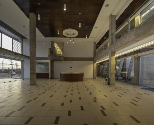 Cielo de madera compuesto por bandejas de madera aglomerada HR.