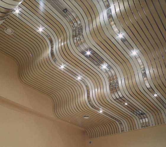 Cielo metálico suspendido útil para bajar la altura de los cielos y cubrir detalles de obra gruesa.