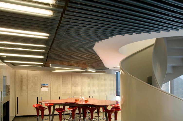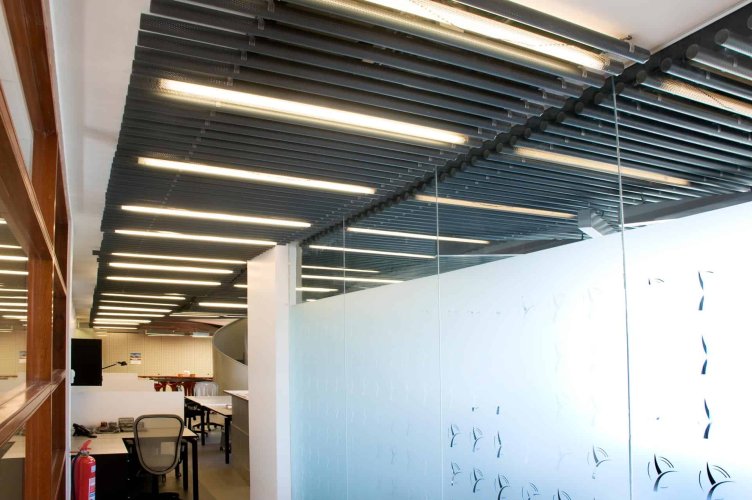 El cielo Tubrise Horizontal de Hunter Douglas es una solución arquitectónica de cielo modular abierto compuesto por paneles tubulares lineales, diseñado para generar continuidad entre los espacios, acentuar la sensación de profundidad y mejorar el desempeño acústico de los recintos.