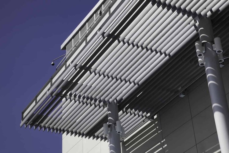 Cortasol lineal que permite regular la transparencia de las fachadas.