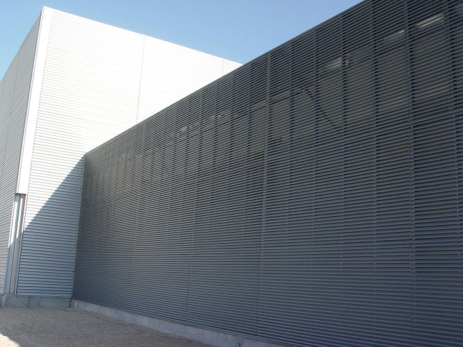 Este es un producto que, por su geometría, además de ser eficiente en el control solar, proporciona, más que cualquier otra celosía, una mayor protección contra agua (Celosía C23 E y C40 E). El fuerte acento de sus sombras aporta una vigorosa textura visual.