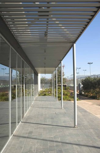 El panel Sunlines es una solución de control solar pasivo, compuesto por perfiles portapaneles, clips y paneles de aluzinc pre pintados, lisos o perforados. Debido a su configuración, está principalmente diseñado para ser utilizado como cortasol cenital y también como quiebravista. Los paneles inferiores actúan como canal conductor de aguas lluvia, evitando que el agua caiga directamente al piso. Existe una transmisión de la luz directa del sol por efecto de la reflexión entre los paneles superiores e inferiores, por lo que se recomienda el uso de colores claros, en particular el blanco.