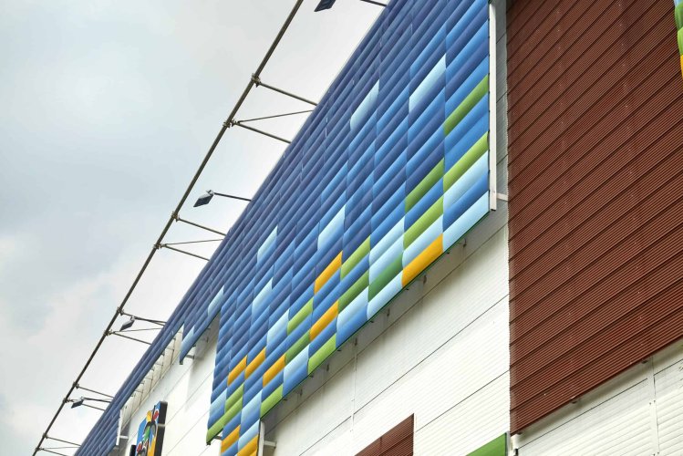 Los paneles FS se usan principalmente como revestimiento de fachadas: se pueden instalar de forma vertical, horizontal o diagonal. El panel no necesita portapanel y se instala directamente a la estructura aplomada. Su forma permite atractivas soluciones arquitectónicas, al no dejar canterías entre paneles.