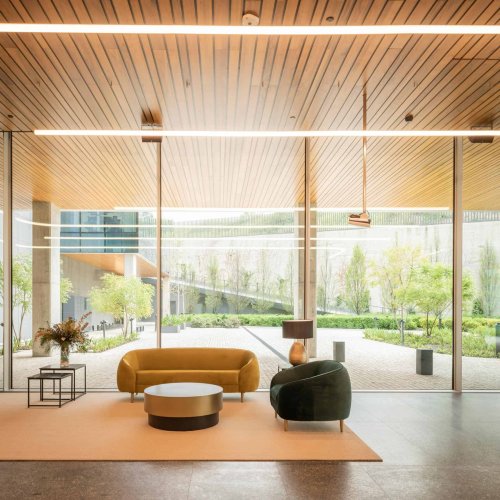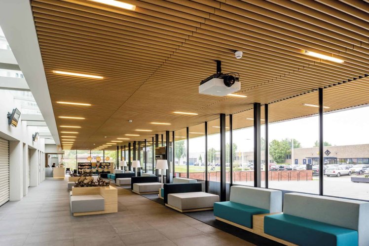 Efecto de listonado continuo: Los paneles se instalan uno al lado del otro, creando un efecto continuo que aporta elegancia y sofisticación a cualquier ambiente. - Funcionalidad: Además de su valor estético, los cielos Woodlines también son funcionales. Ayudan a reducir el ruido, mejorar la acústica y ocultar imperfecciones en la superficie del techo.
