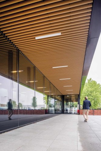 WoodLines consiste en chapas de madera natural de 0,4 mm de espesor de distintas tonalidades y vetas. Utiliza tecnología de última generación que permite adherir continuamente una chapa de madera natural a un perfil metálico formado, con lo cual se obtiene un producto que reúne toda la funcionalidad producto metálico Hunter Douglas y la nobleza estética y calidez de la madera natural, creando entornos acogedores, confortables y saludables.