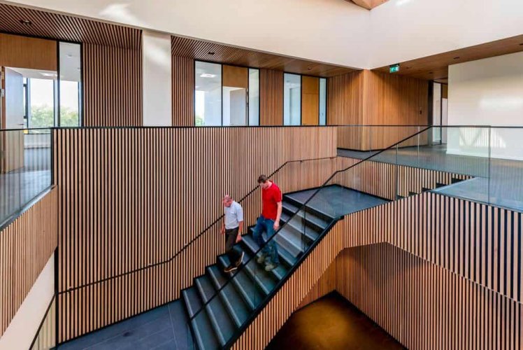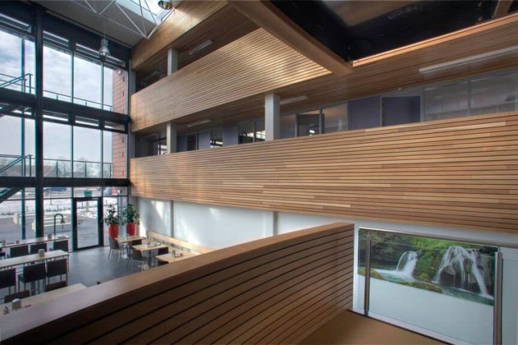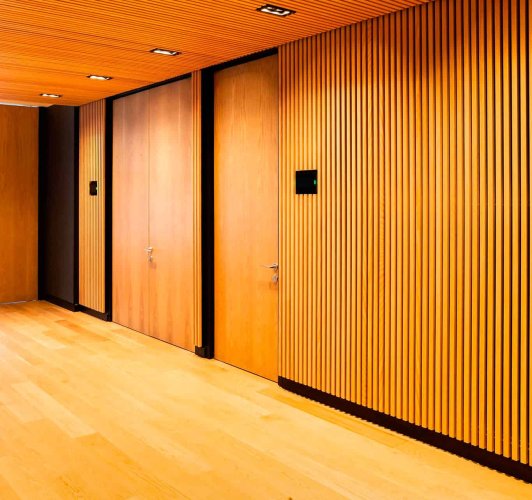 WoodLines es una terminación de madera natural que permite generar un listoneado continuo que crea espacios atractivos y de gran calidez.