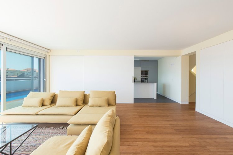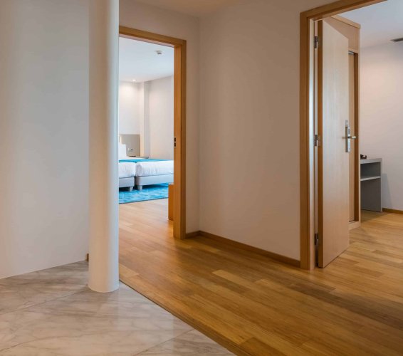 Piso de madera de fácil instalación con una capa superior de bambú y un sistema de clic.