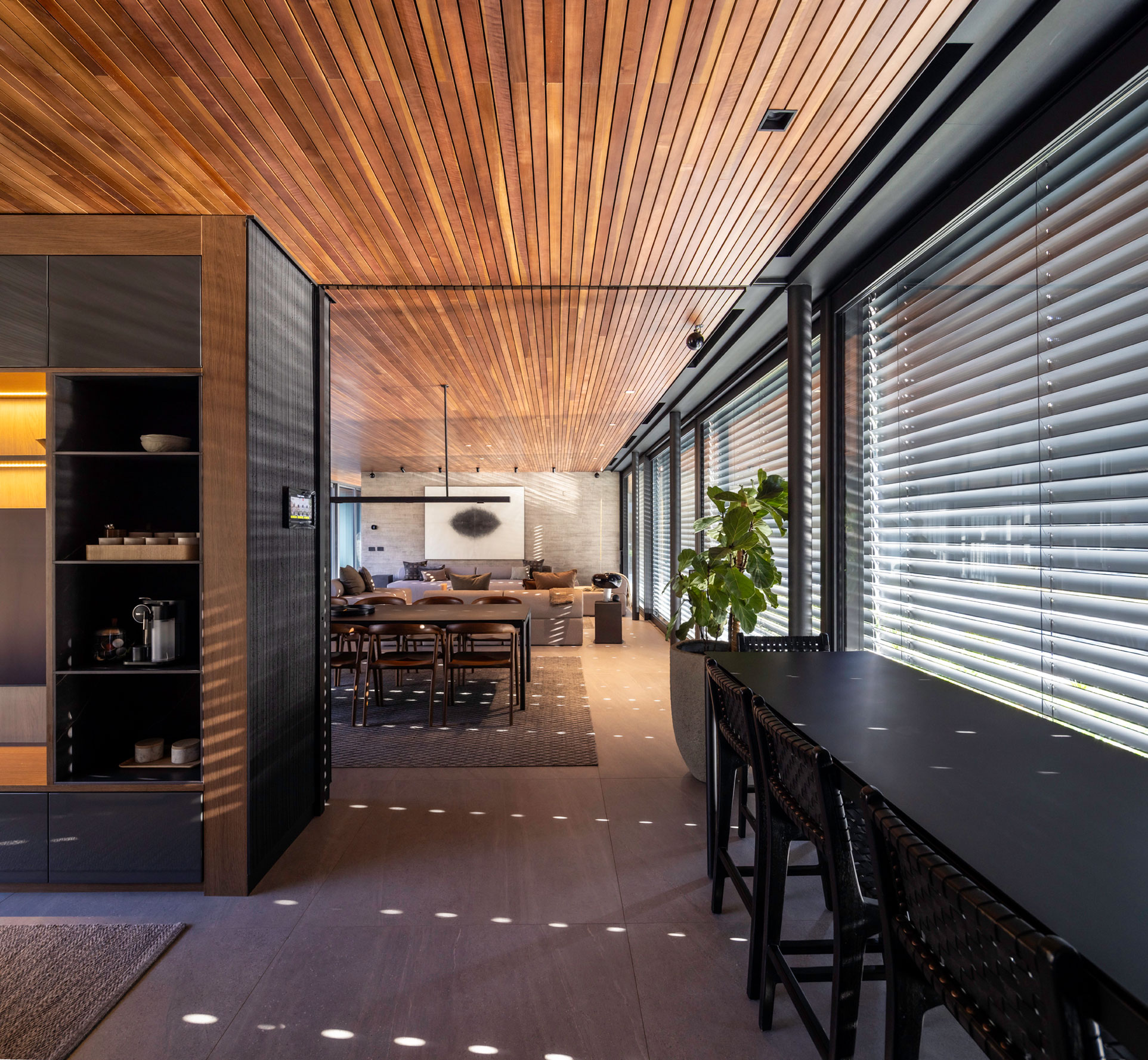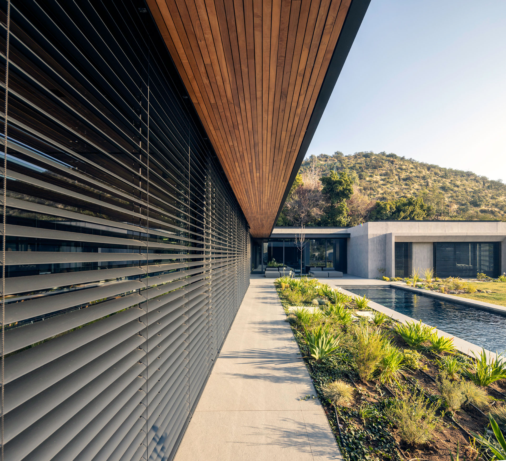 Producto: 80 mm – Fins Accionable –(Módulo 250mm, Aluzinc 0,8mm, pintura poliéster, color Negro Oscuro, Accionamiento Motorizado con Domótica)